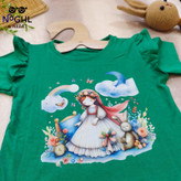 تیشرت دخترانه فانتزی با دو طرح و رنگ زیبا بسیار لطیف و خوش دوخت رنگ: سبز و یاسی سایز ها 40،45،50،55،60 🟠اندازه ها براساس سانتی متر🟠