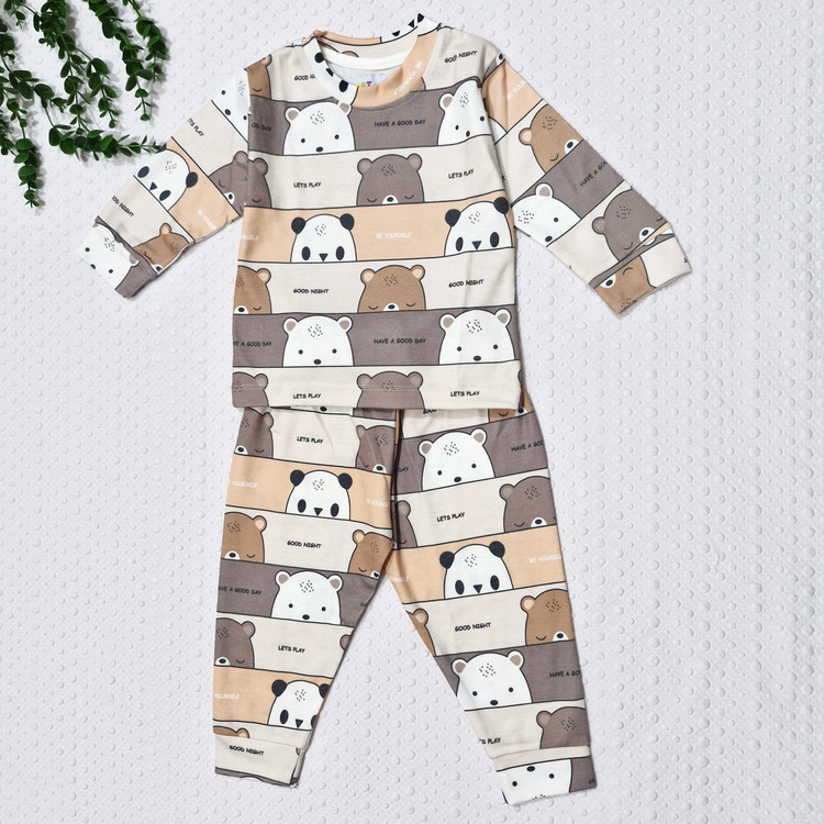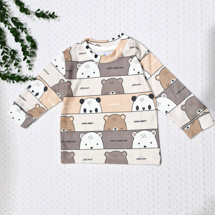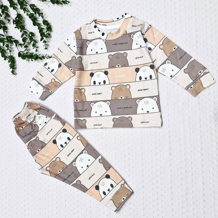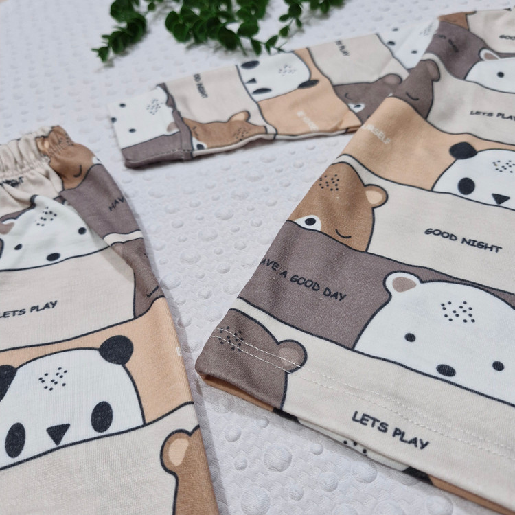 ست بلوز و شلوار راحتی نخی طرح خرس قهوه ای